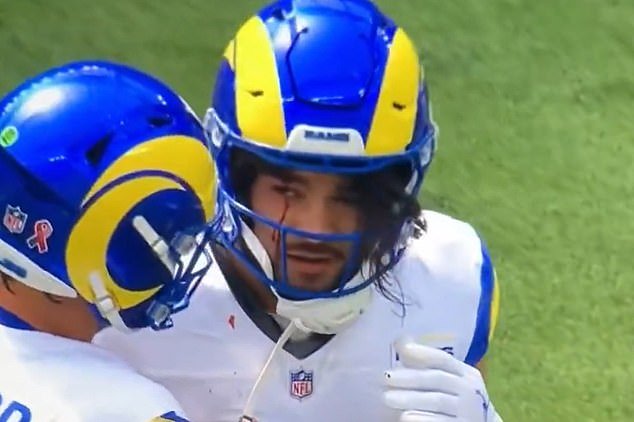 NFL star Puka Nacua bleeds from the EYE before concussion check in scary scenes