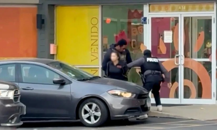 Video capturing a portion of the arrest shows two ICE agents aggressively detaining the worker inside Rayito de Sol Spanish Immersion Learning Center on Chicago’s North Side at about 7 a.m., shortly after the center opened. The agents pull her outside the center and push her against a gray sedan while she shouts. Then one of the agents heads back inside.