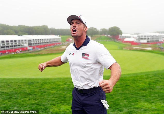 Bradley made no secret of his desire to use DeChambeau to whip the crowd into a frenzy. He said: ‘Beside the fact they are phenomenal players and bring a spark to our team, Bryson has been an incredible teammate in the locker room and we want him to lead our team out with Justin in the first match.
