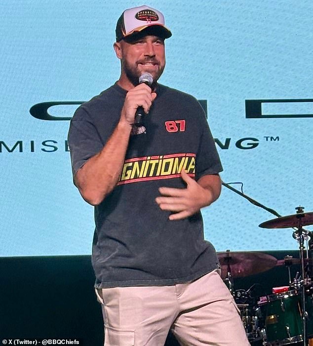 It is unclear when exactly Kelce arrived at his Car Jam event – with fan footage of him on stage surfacing online at around 6:30pm local time – yet his fiancee did not follow to the undoubted disappointment of fans in attendance.