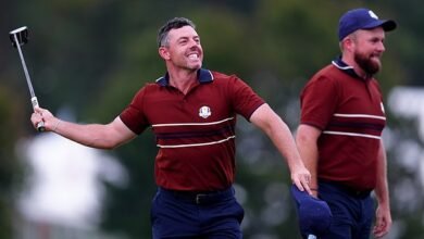 The rain has made it difficult for both teams, but Manchester United have a 2-0 lead at the break. Harry Maguire put the visitors in front with his side’s first goal from a corner in the Premier League this season before Bruno Fernandes added a second. There’s a lot of work for Leeds to do now.