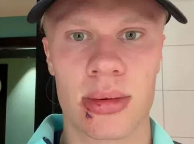 Manchester City striker Erling Haaland required three stitches after suffering a bleeding mouth