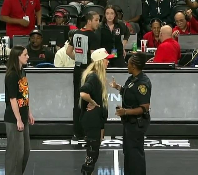 However, a uniformed police officer swiftly approached Cunningham for her infringement on the court, motioning for her to backup.