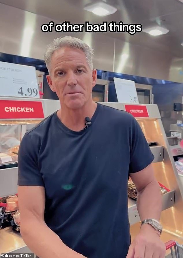 Health US expert, Dr Daniel Pompa (pictured) has issued a chilling warning about supermarket rotisserie chickens, calling them ‘absolutely never, ever’ safe to eat