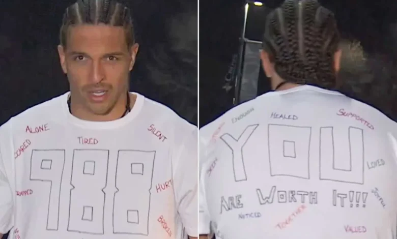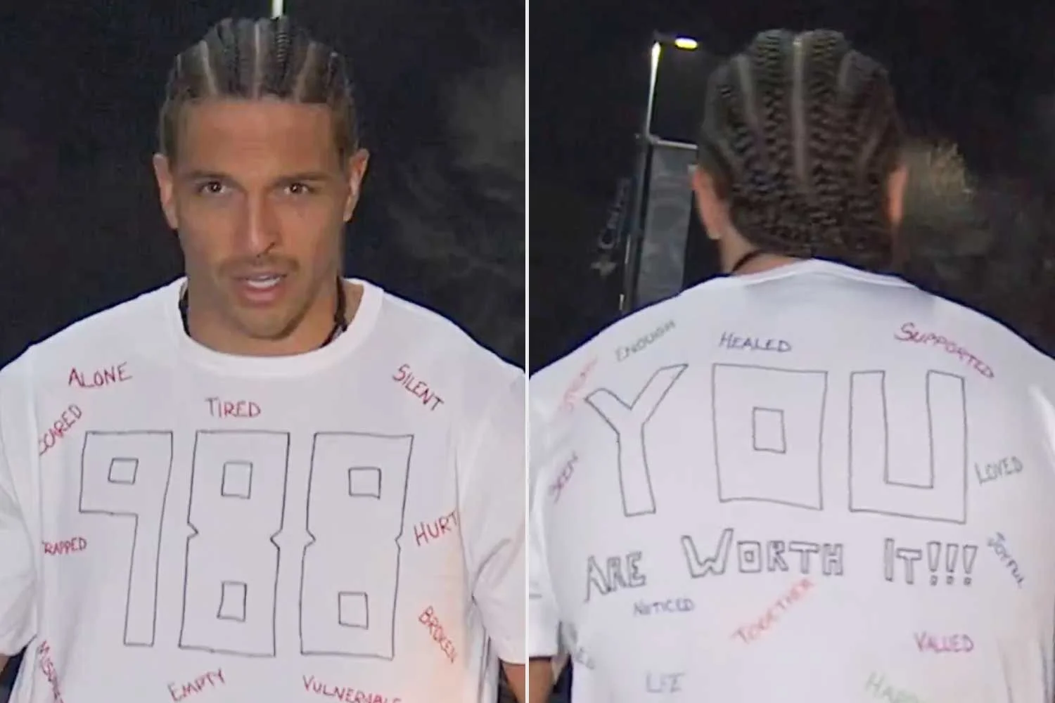 - He arrived at the team’sThursday Night Footballgame against the New York Jets while wearing a shirt that had the suicide and crisis lifeline on the front