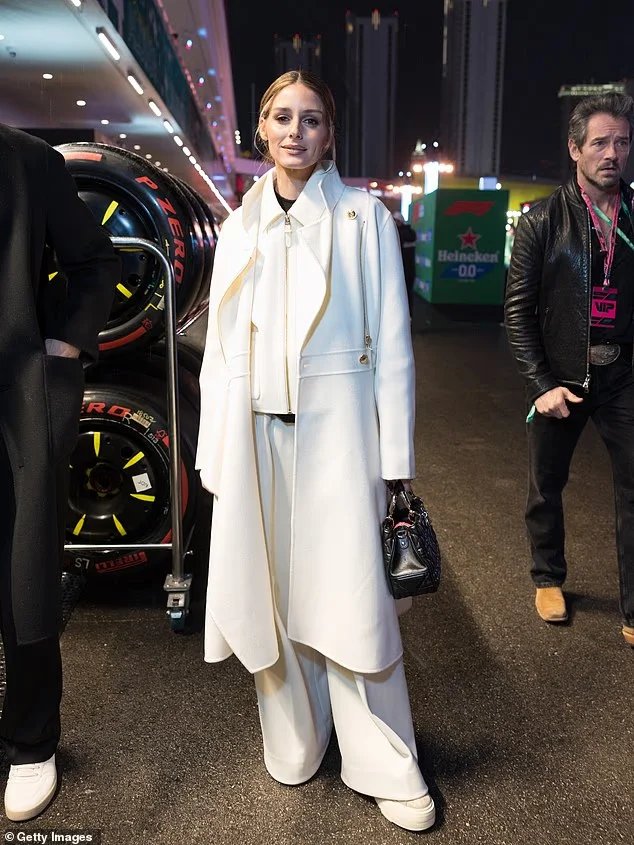 Socialite Olivia Palermo, 39, looked effortlessly stylish in a striking all-cream ensemble consisting of matching fleece, pants and long overcoat with gold button detailing
