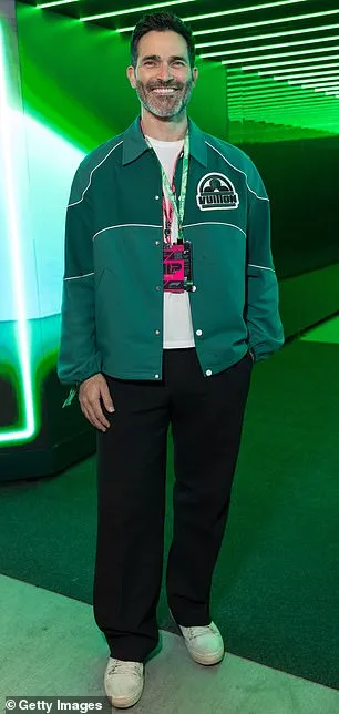 French YouTuber Squeezie, 29, (left) and actor Tyler Hoechlin, 38, (right) both dressed down for the sporting occasion in oversized jackets, baggy pants and white trainers