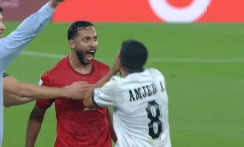 The shot began after a foul was awarded in favor of Bahrain following the intervention of Amjad Atwan, but what happened next changed the atmosphere, as Al-Khattal got up and headed towards Atwan very nervously, directing him with a “butt in the face.”
