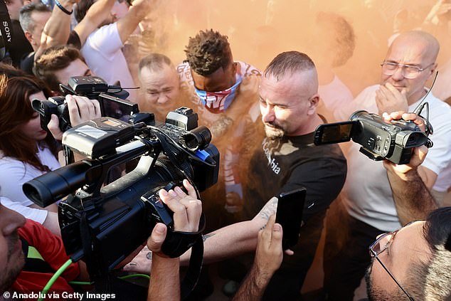 Andre Onana was mobbed by Trabzonspor fans as he arrived in Turkey on Thursday afternoon