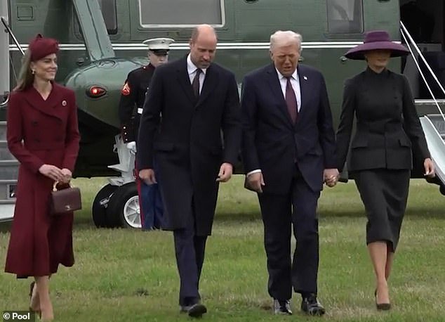 ‘When they walk away from the helicopter, you see Kate notices the closeness between Donald and Melania, but then what occurs is that her brain notices this and you’ll see there is a shift of her handbag in her hands,’ Brian Durham from Huddle Culture told The Mirror.