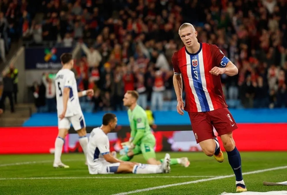 And he fell Erling Haaland scored a hat-trick in the 27th, 63rd, and 72nd minutes of the match that took place at Ulleval Stadium in the Norwegian capital, Oslo.Note that the Manchester City striker missed an early penalty kick, just 6 minutes after the starting whistle sounded.