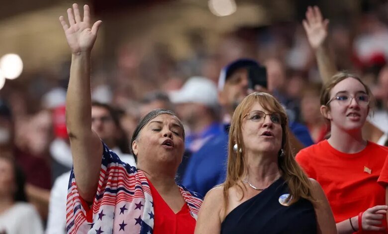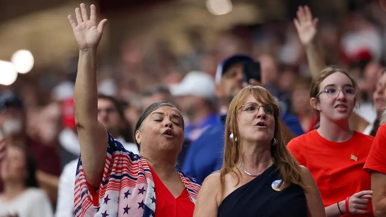 Attendees gather in the stands ahead of the memorial service for conservative activist Charlie Kirk at State Farm Stadium on Sept. 21, 2025, in Glendale, Arizona. (Eric Thayer/Getty Images)