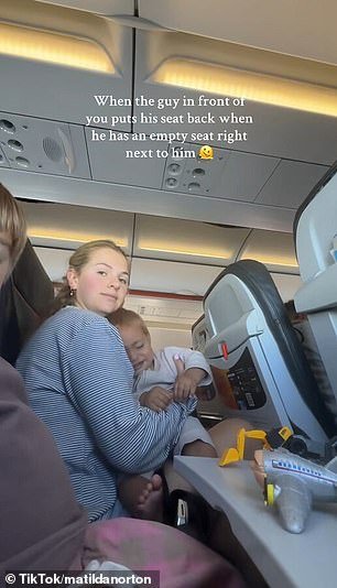 Matilda said the passenger was entitled to recline his seat, but he should have been more considerate as he had an empty chair next to him.