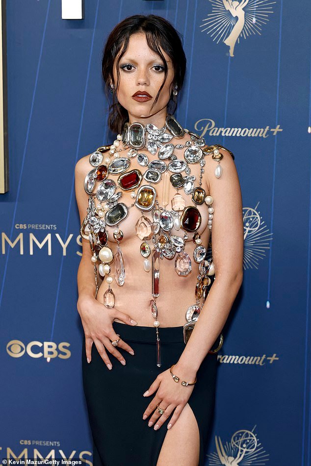 Jenna Ortega’s Hollywood makeover! Wednesday star embraces daring ‘naked dress’ trend at the Emmys in latest bold move – as she ditches her gothic attire