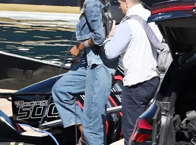 Michelle Obama arrives on Steven Spielberg’s yacht in Portofino, Italy, ahead of her husband