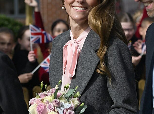 The Princess of Wales was the image of elegance with her stunning ‘bronde’ tresses as she made a visit to Southport this morning.