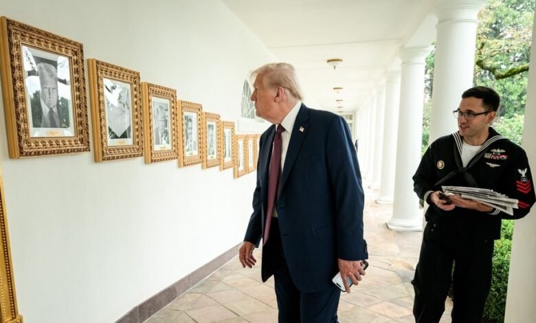 The portraits, displayed in gold frames along the West Wing Colonnade, begin with George Washington and extend to Trump himself, before culminating in a photograph of the pen device used to sign Biden-era documents.