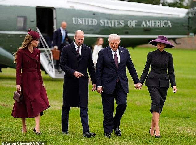 Kate and Prince William, both 43, welcomed Donald Trump and his wife, Melania to Britain, as the US President’s historic second state visit began in the Walled Garden on the Windsor estate.