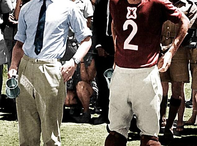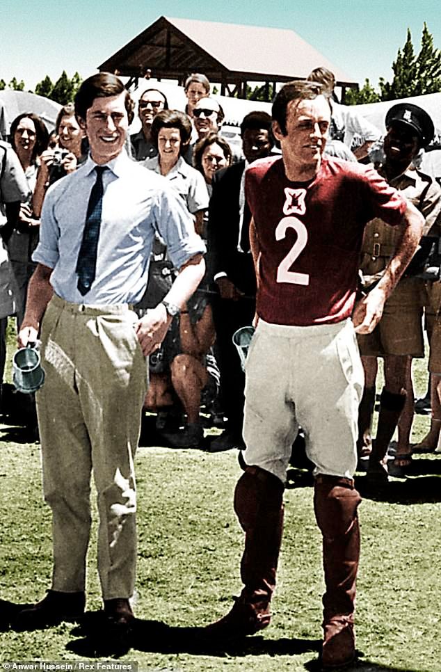 The Queen’s ex husband Andrew Parker Bowles, a dashing figures as a young man, played polo on the same team as a young Prince Charles. Pictured (right) with the then prince on a royal visit to Kenya in 1971