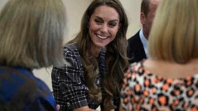 Camilla was photographed wearing a vibrant sapphire blue dress, a matching coat by Fiona Clare and hat by Philip Treacy and a sapphire and diamond brooch. Kate was seen in an Emilia Wickstead dress, a hat by Jane Taylor and a feather brooch.