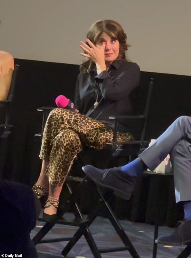 The audience then burst into applause for Lewinsky, who continued to wipe tears from her face for the next minute.
