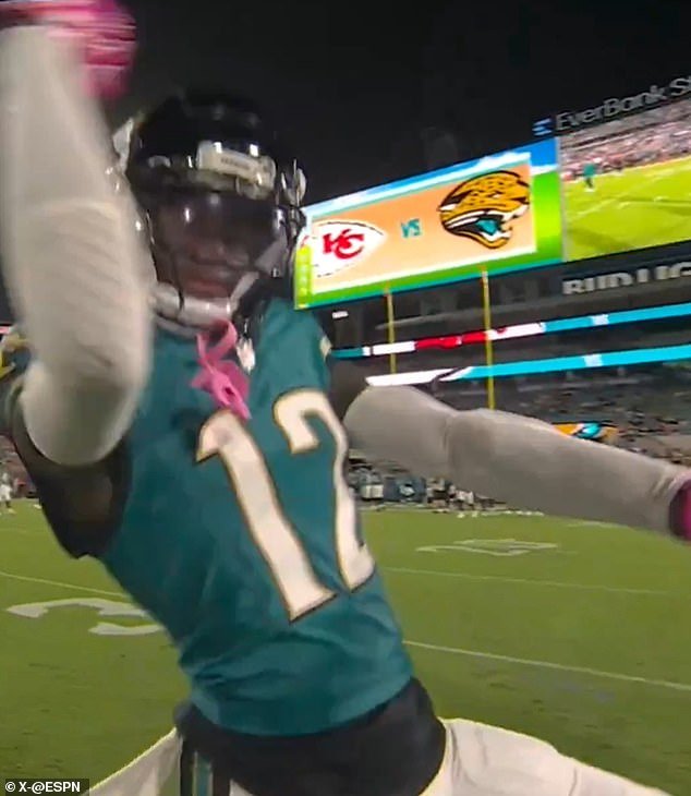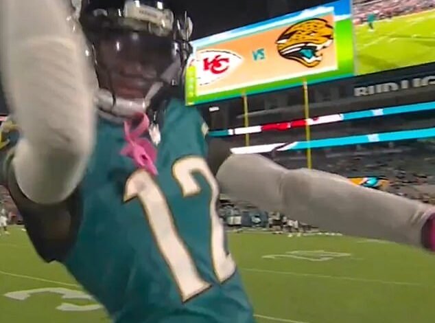 Travis Hunter was slammed for his ‘cringe’ dance moves on Monday night as he got ready for the Jaguars’ matchup against the Chiefs.