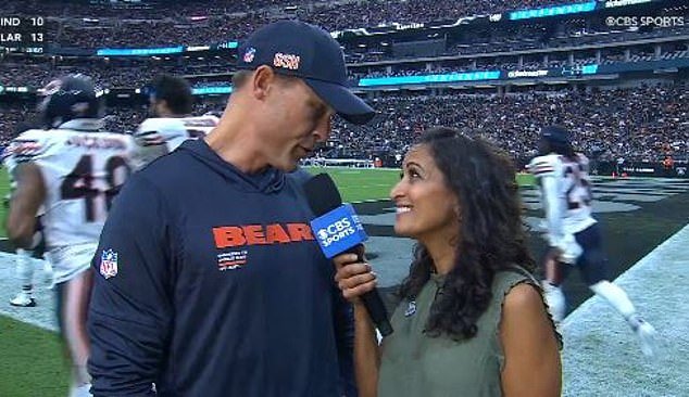 Aditi Kinkhabwala grilled Johnson in a brief but awkward exchange over his struggling team before the third quarter against Las Vegas Raiders, where they were losing 14-9.