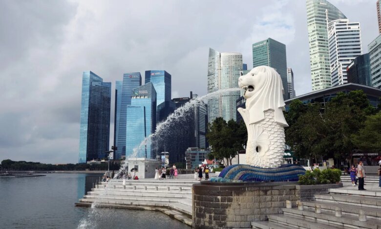 The Merlion statue in the central business district of Singapore, on Tuesday, July 8, 2025.