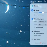 You can also decide to always show snow or hide snow behind open app windows. Snow intensity can also be adjusted from the default to adjust how much snowfall appears when active.