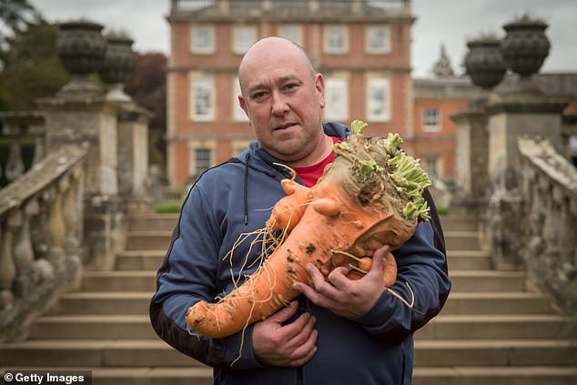Chris Marriott wowed judges with a giant carrot that clocked in at a remarkable 21lbs- roughly the same as your average two-year-old