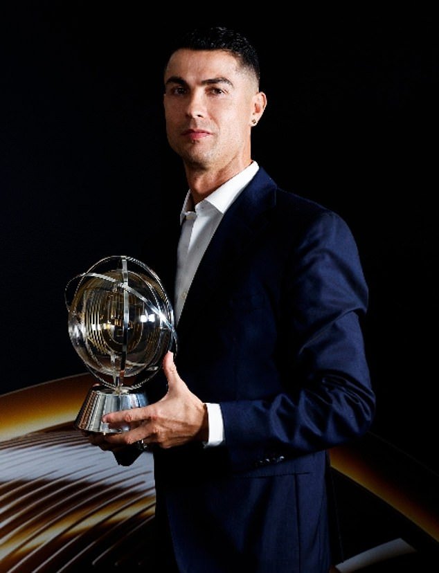 Cristiano Ronaldo, pictured with his Globo Prestigio award from Tuesday night's ceremony, is the world's first billionaire footballer - but would rather just play for Portugal