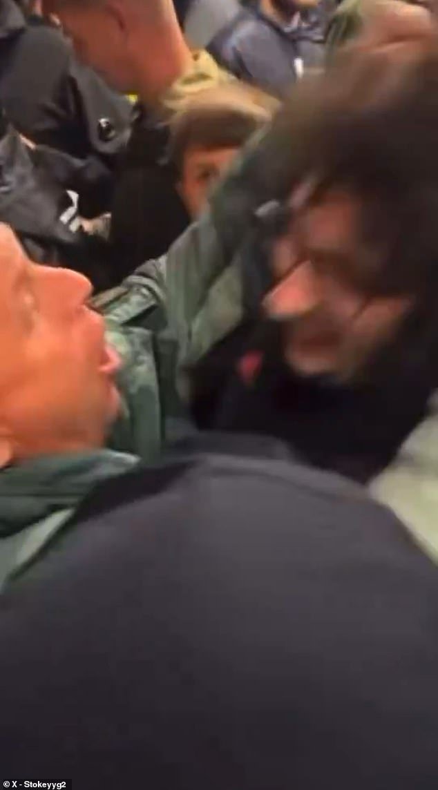 The furious supporter, who seemed to take issue with Ilett’s challenge, said ‘F*** off, f*** off, I’ll do what I f***ing want’ as he attacked him in a rage
