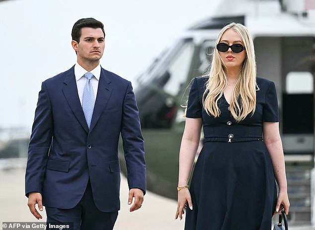 But for now, only Tiffany and her husband have been spotted boarding the Stansted-bound plane with Trump and Melania.